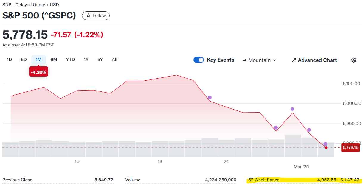 1. 트럼프 관세 확대에 따른 주식 시장 급락: S&P 500, 다우지수 하락세 기록