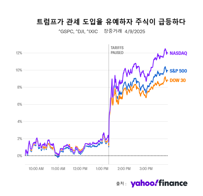 📈 3. 미국 주식, 트럼프의 90일 관세 유예로 역사적 랠리: "최악의 시나리오 해소"