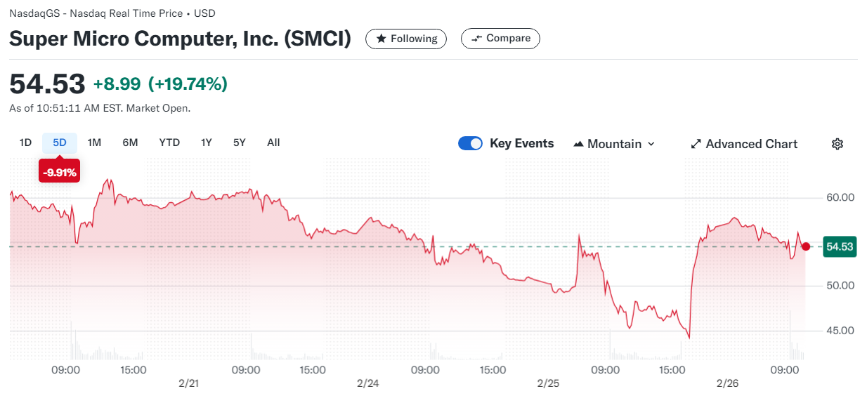 엇그제만 해도 이제 꽃길만 걸을 것 같던 슈퍼마이크로컴퓨터 Supermicro(SMCI) 는 미국 증권거래위원회(SEC)에 재무 보고서 제출 문제로 긴장감을 높히며 주가 하락을 보이더니 금융 보고서 제출 기한을 준수하면서 급등했습니다. 지난 번에도 이러더니... 일부러 이러는 건 아니겠죠?