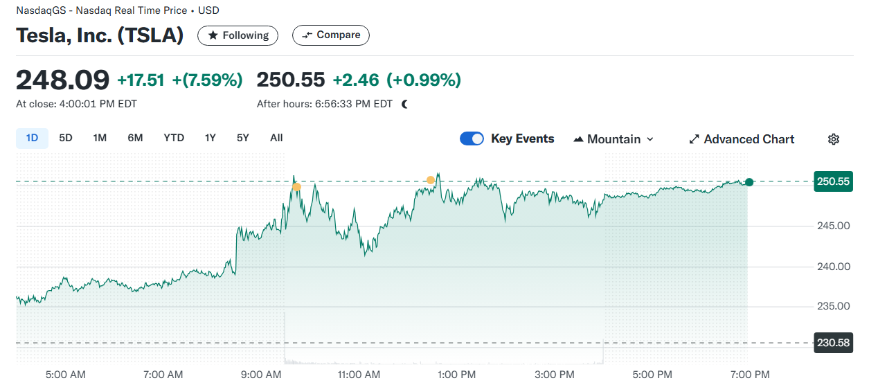 이러한 소식에도 불구하고 테슬라 주가는 수요일 7.6% 상승 마감했는데, 이는 완화된 CPI 데이터로 인해 전반적인 기술 부문이 상승세를 보였기 때문입니다. 최근 테슬라 주가는 연초 대비 39% 이상 하락한 후 반등했습니다.