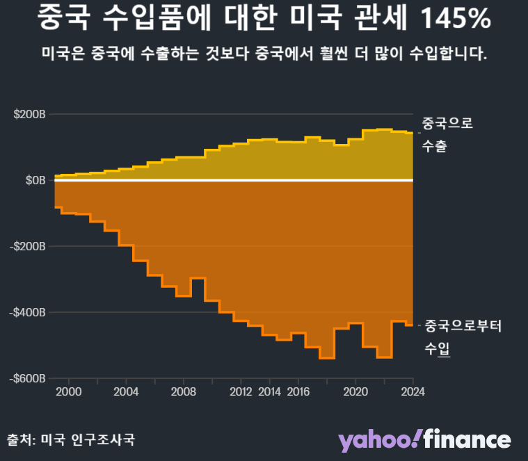 그러자 중국이 반격에 나서 미국 상품에 대한 관세를 125%로 인상하면서 두 나라 간의 무역 전쟁이 더욱 격화되었습니다.
