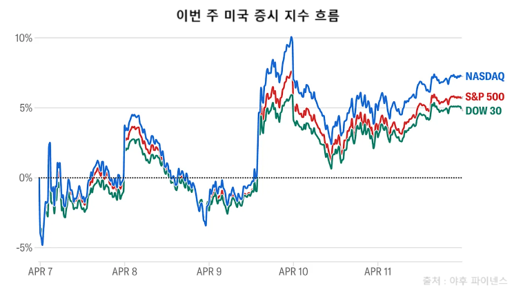 결국 S&P 500 지수와 다우 지수는 2023년 이후 최고의 한 주를 보냈고, 나스닥의 주간 7% 상승률은 2022년 이후 최고치를 기록했습니다.