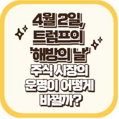 여러 주식시장 전망 기사에서 말하는 트럼프 전 대통령이 '해방의 날'로 명명한 4월 2일이 다가오고 있습니다. 이날 발표될 광범위한 상호 관세 정책은 글로벌 경제와 주식 시장에 큰 영향을 미칠 것으로 예상됩니다. 과연 이날의 발표가 시장에 어떤 변화를 가져올 지 알아보고 어떤 준비를 해야할 지 알아봅시다.